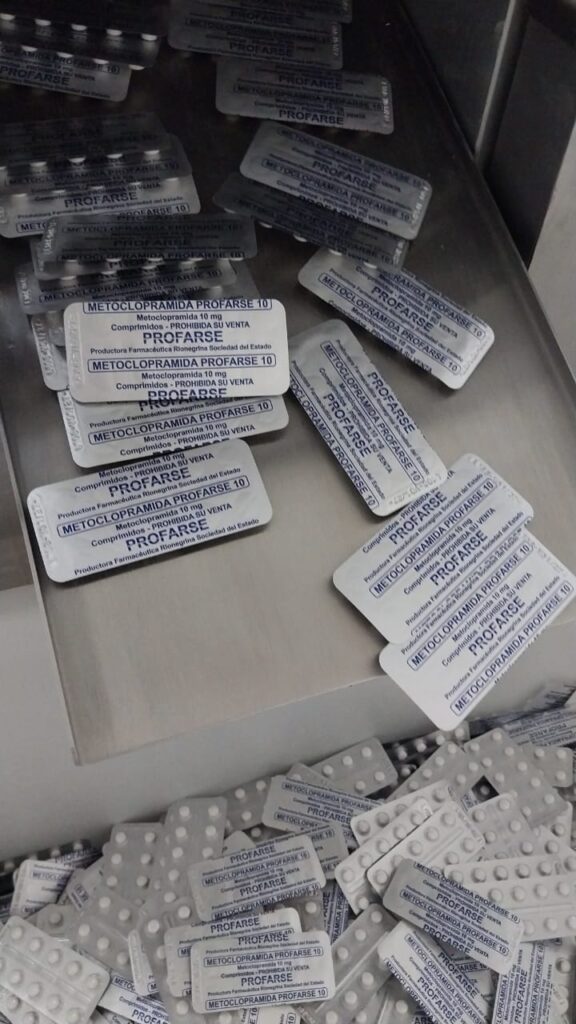 En su compromiso con la calidad y seguridad en la producción farmacéutica, PROFARSE avanza en el proceso de blisteado de Metoclopramida PROFARSE 10, un medicamento esencial con propiedades antieméticas, antinauseosas y propulsivas.